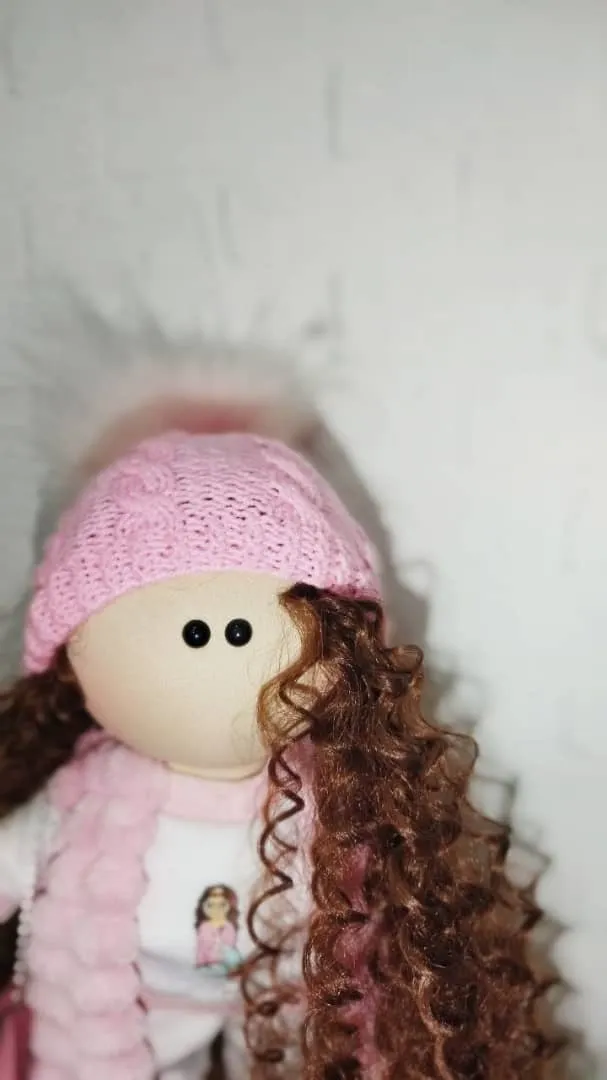 عروسک النا با کلاه و شال صورتی بافتنی و موهای بلند فرفری، یه حس گرم و دوستداشتنی از روزای برفی میده. ❄️