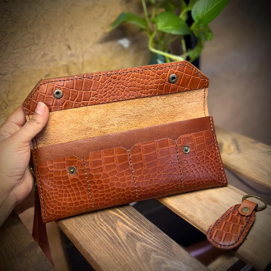 دوخت کاملاً دستی، رنگ لبه حرفه‌ای و طرح کروکودیل روی چرم، این ست را به انتخابی خاص و ماندگار برای استایل‌های رسمی و کلاسیک تبدیل کرده.